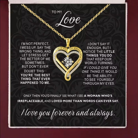Engraved Heart Necklace with Wooden Box (To My Love)